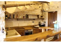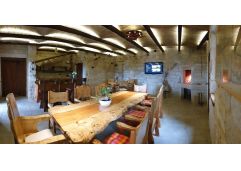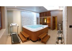 Prekrasan podrum popločen kamenom sa lijepo uređenom konobom u kojoj je velika prostorija za druženje, kuhinja, gostinska soba, wc, tuš, te u nastavku teretana sa saunom i jacuzzijem, gospodarstvo.