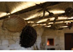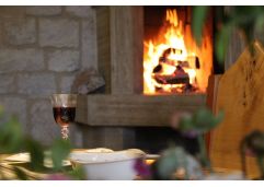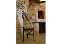 Ispred kuće je se nalazi šest parkirnih mjesta. S parkirališta se, kroz raskošna drvena vrata i u kamenom podu uklesanu ružu vjetrova, ulazi na gornju etažu.